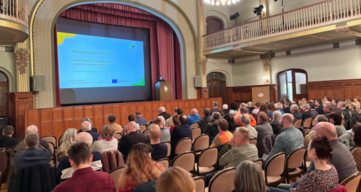 05 Heidekonferenz 2025: Zukunftsthemen in der Dübener Heide Die beiden Lokalen LEADER-Aktionsgruppen der Dübener Heide und ihre Regionalmanagements veranstalteten im Februar ihre Heidekonferenz 2025. Das bewährte Format für Austausch und Vernetzung wurde von über 100 Teilnehmenden aus Vereinen, Politik, Wirtschaft und von Privatpersonen genutzt. Die Besucherinnen und Besucher tauschten sich über Chancen und Herausforderungen einer Entwicklung der Dübener Heide als Outdoor-, Kultur- und Bildungsregion aus. Nach kurzen Impulsvorträgen konnten sie aktuelle Projekte und Themen der Regionalentwicklung in Arbeitsgruppen vertiefen. Zentrale Themen waren:
